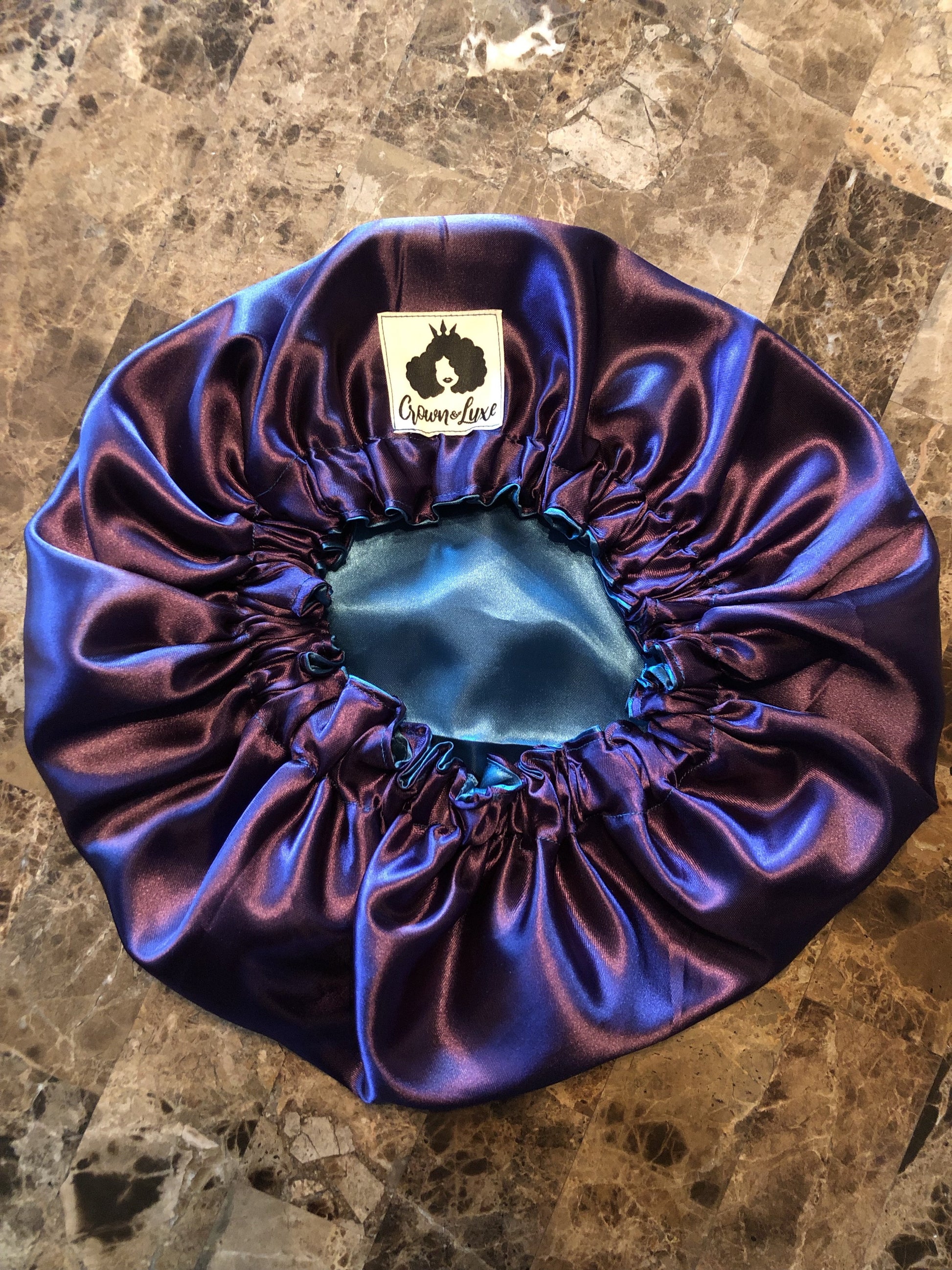 Deep Plum and Teal Solid Reversible Satin Bonnet